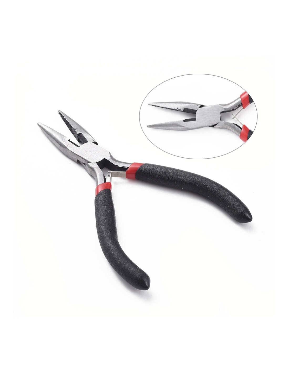 Alicate plano de acero ideal para trabajar con alambre, armar piezas y sujetar componentes en joyería y bisutería.