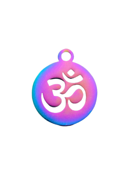 Colgante de acero bizantino de alta calidad, rodondo con OM troquelado.