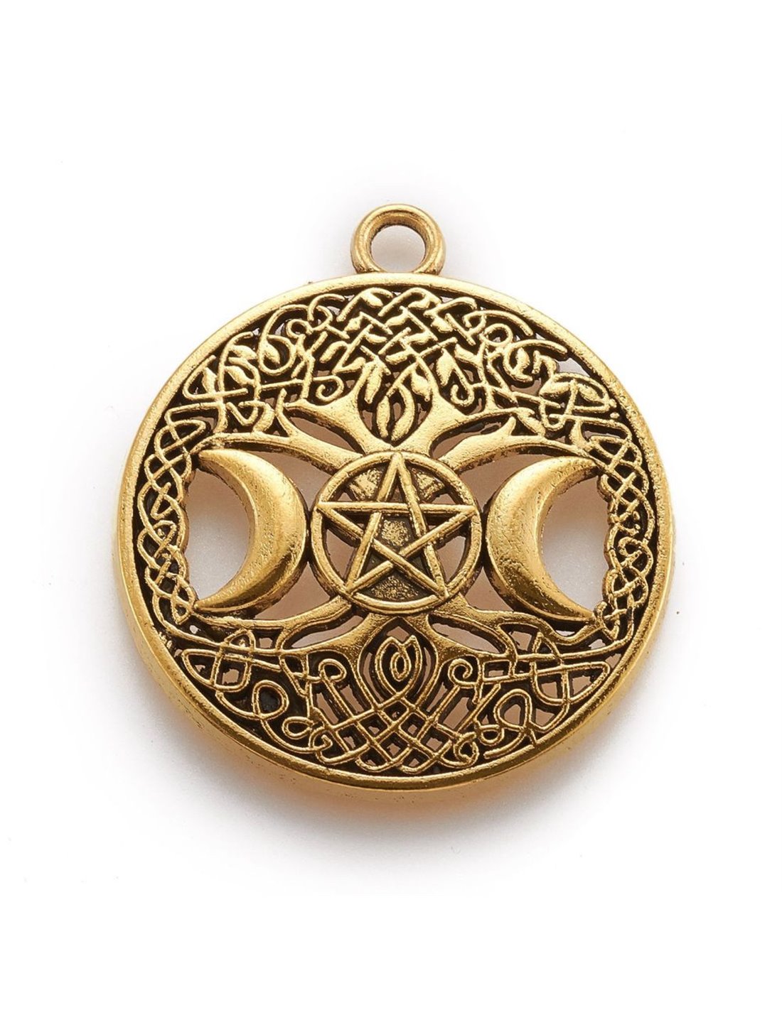 Amuleto triple Luna en arbol dorado.