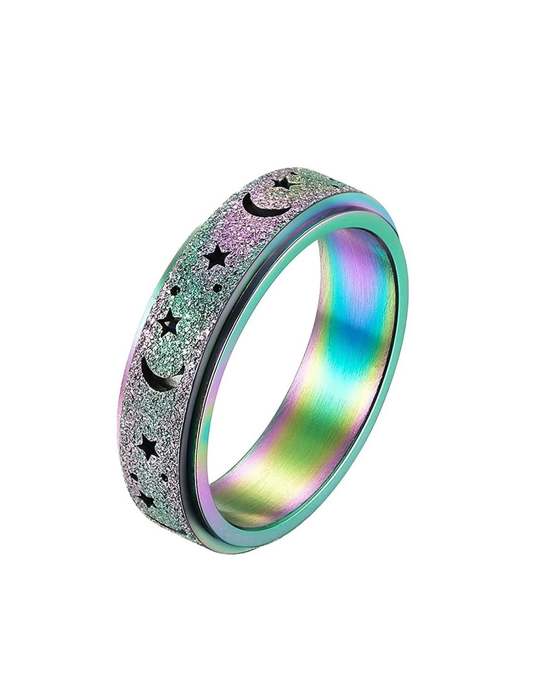 AA401 Anillo Antiestress Luna y Estrellas, plateado
