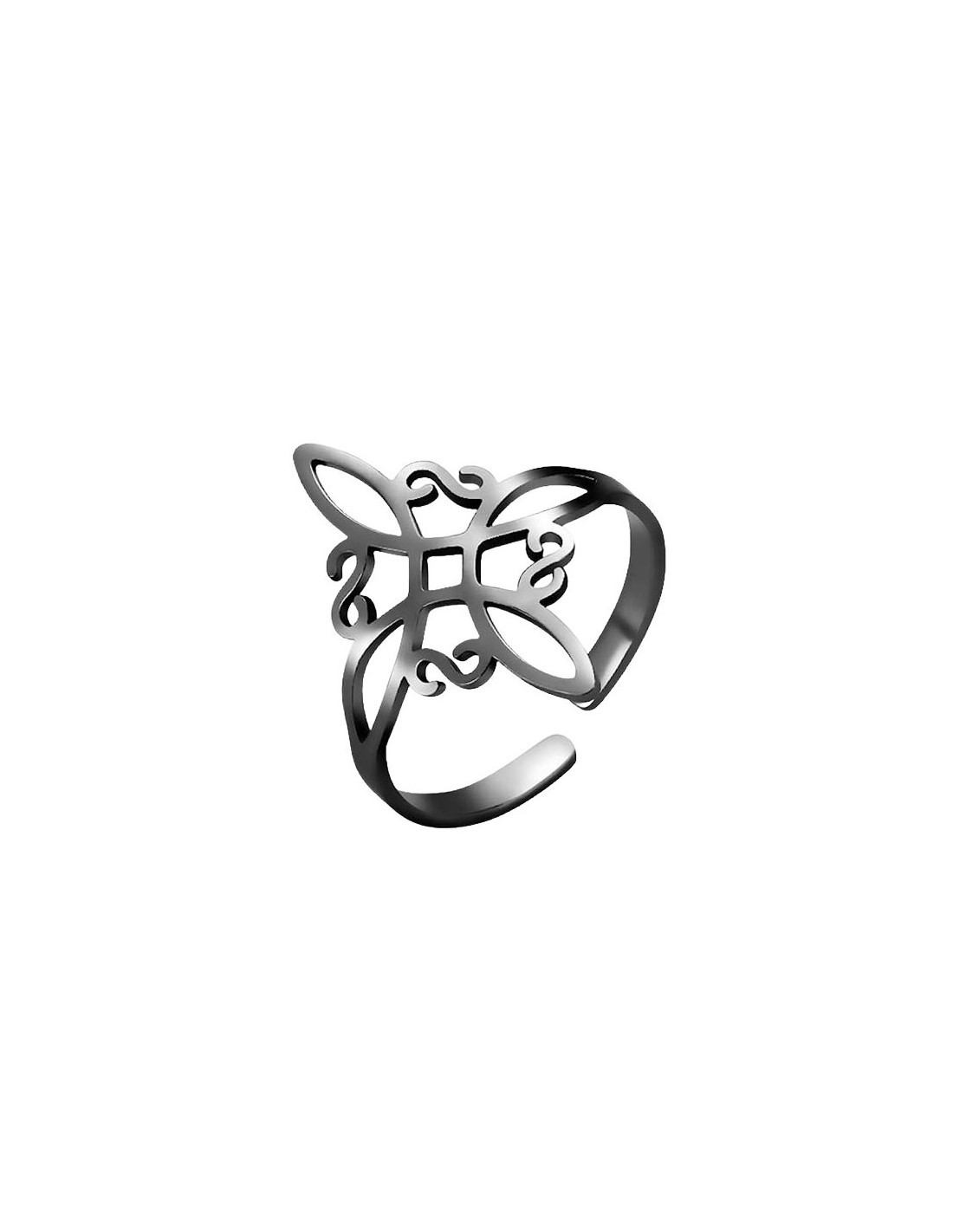 Anillo abierto de acero bizantino, antialérgico. En color negro.