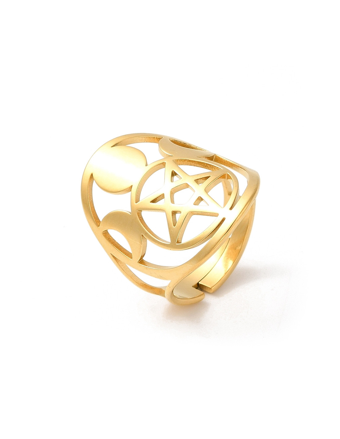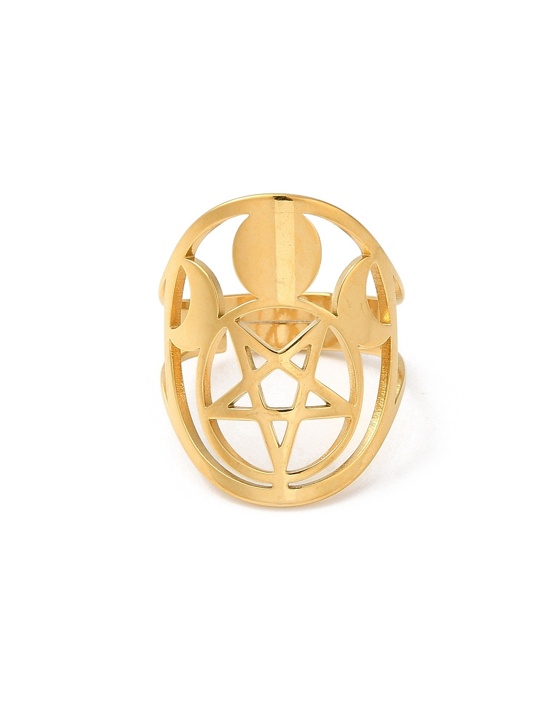 AA157 Anillo Pentagrama Triple Luna, dorado