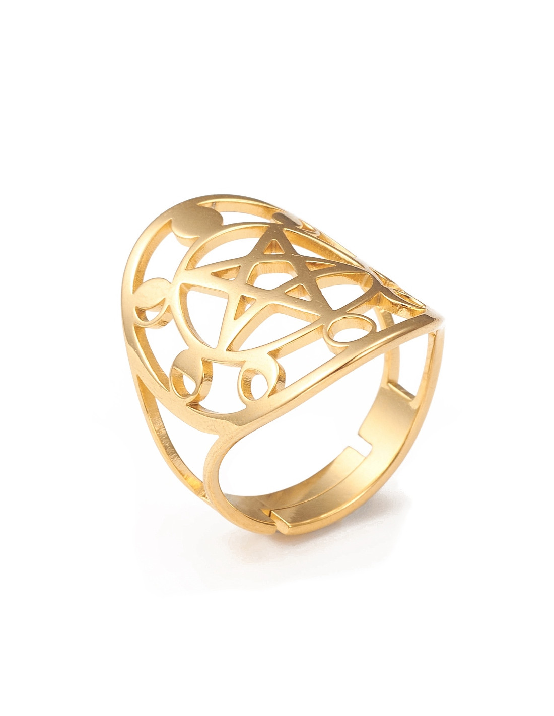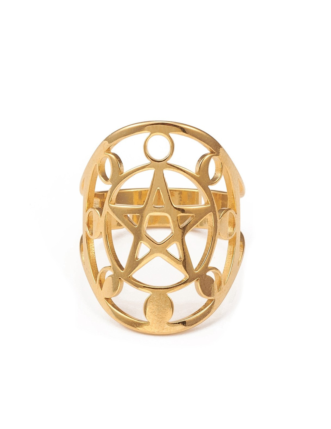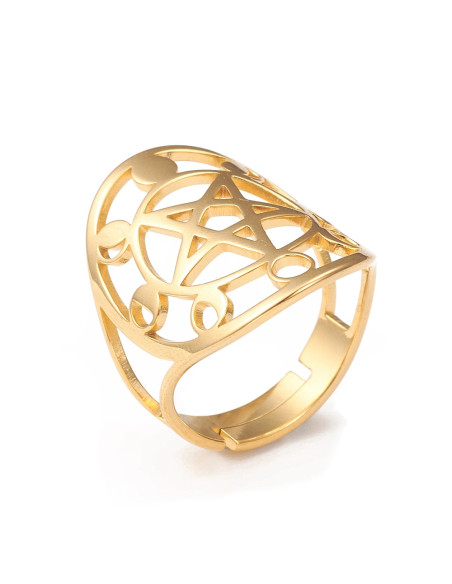 AA158 Anillo Pentagrama con Fase Lunar, dorado