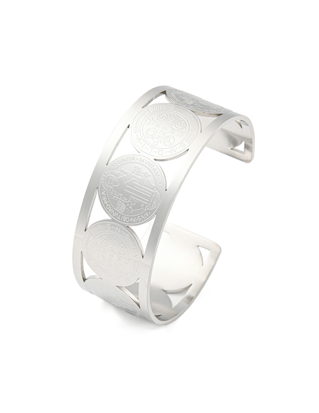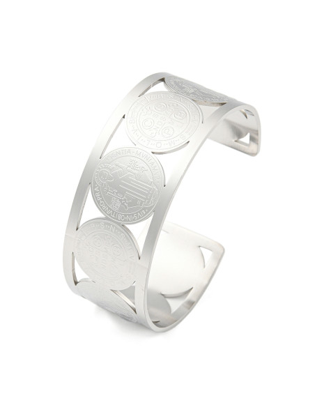 AT310- Brazalete medallas San Benito, plateado