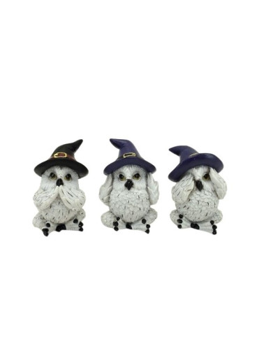 Esta figura representa a tres búhos, encarnando la sabiduría ancestral del principio de prudencia y equilibrio: No veo, No oigo, No hablo. Cada búho simboliza la importancia de controlar lo que se observa, escucha y dice, invitando a la reflexión, el autocontrol y la protección energética.