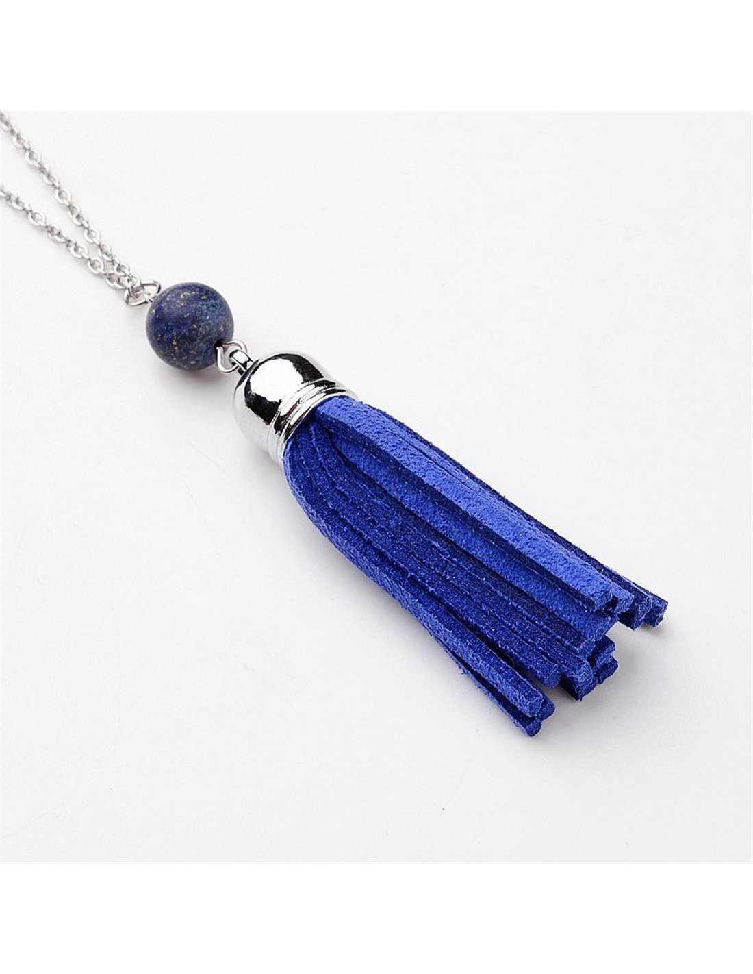 COLGANTE DE FLECOS CON BOLA DE MINERAL LAPISLAZULI