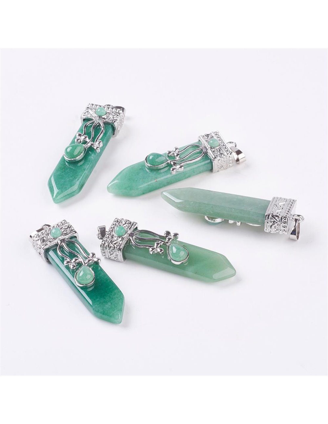 Colgante en forma de punta, en mineral Aventurina Verde.