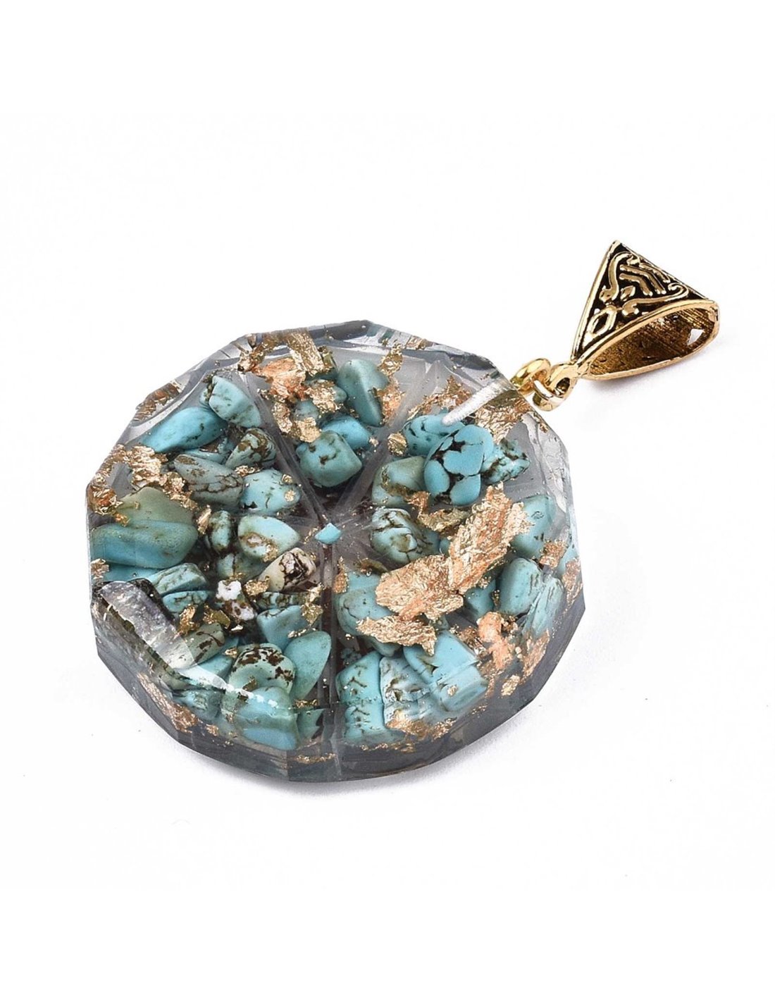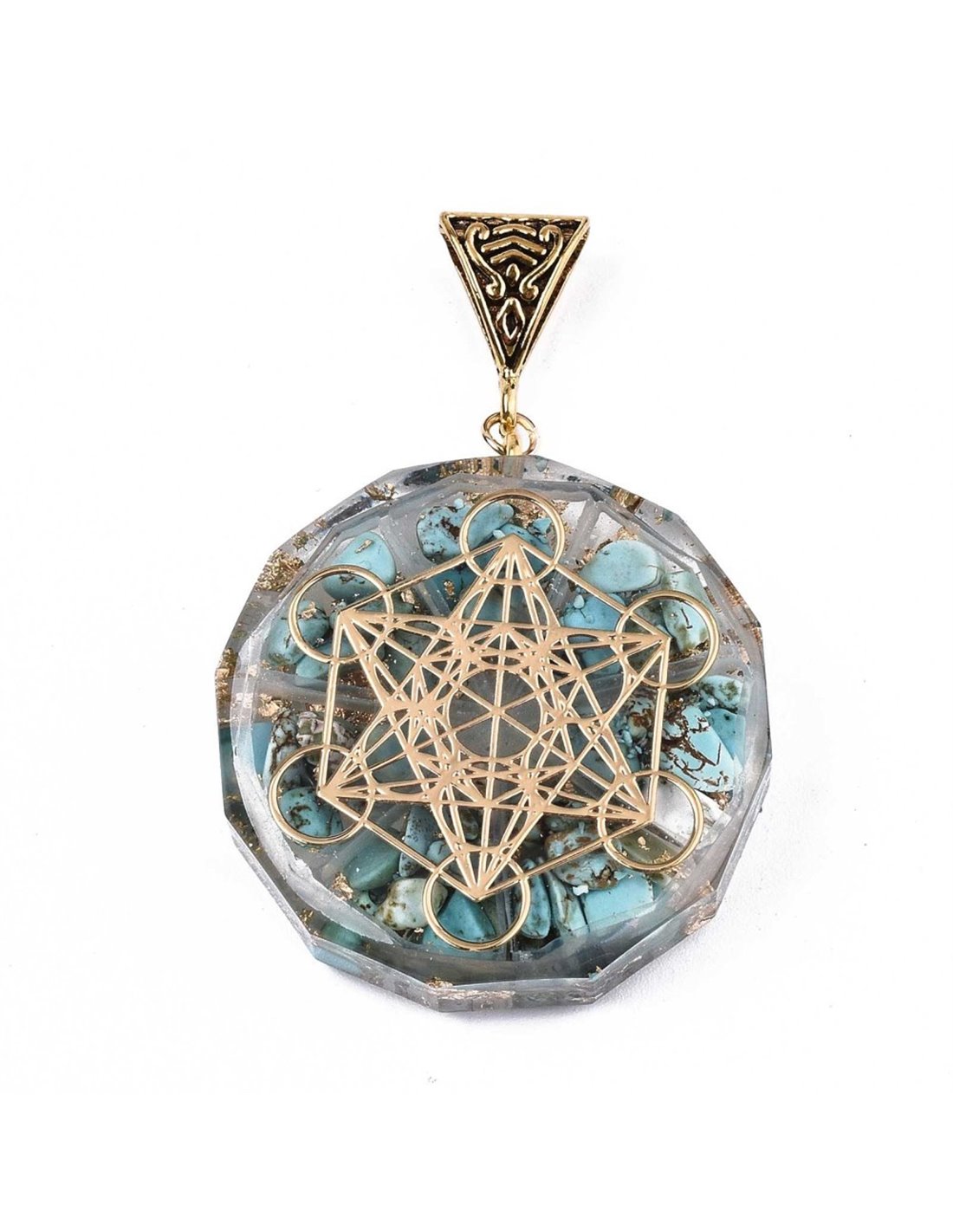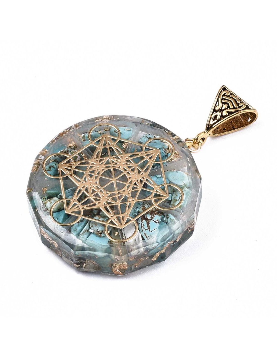 Colgante de resina con lámina en tono dorado, con el símbolo del Metatrón.