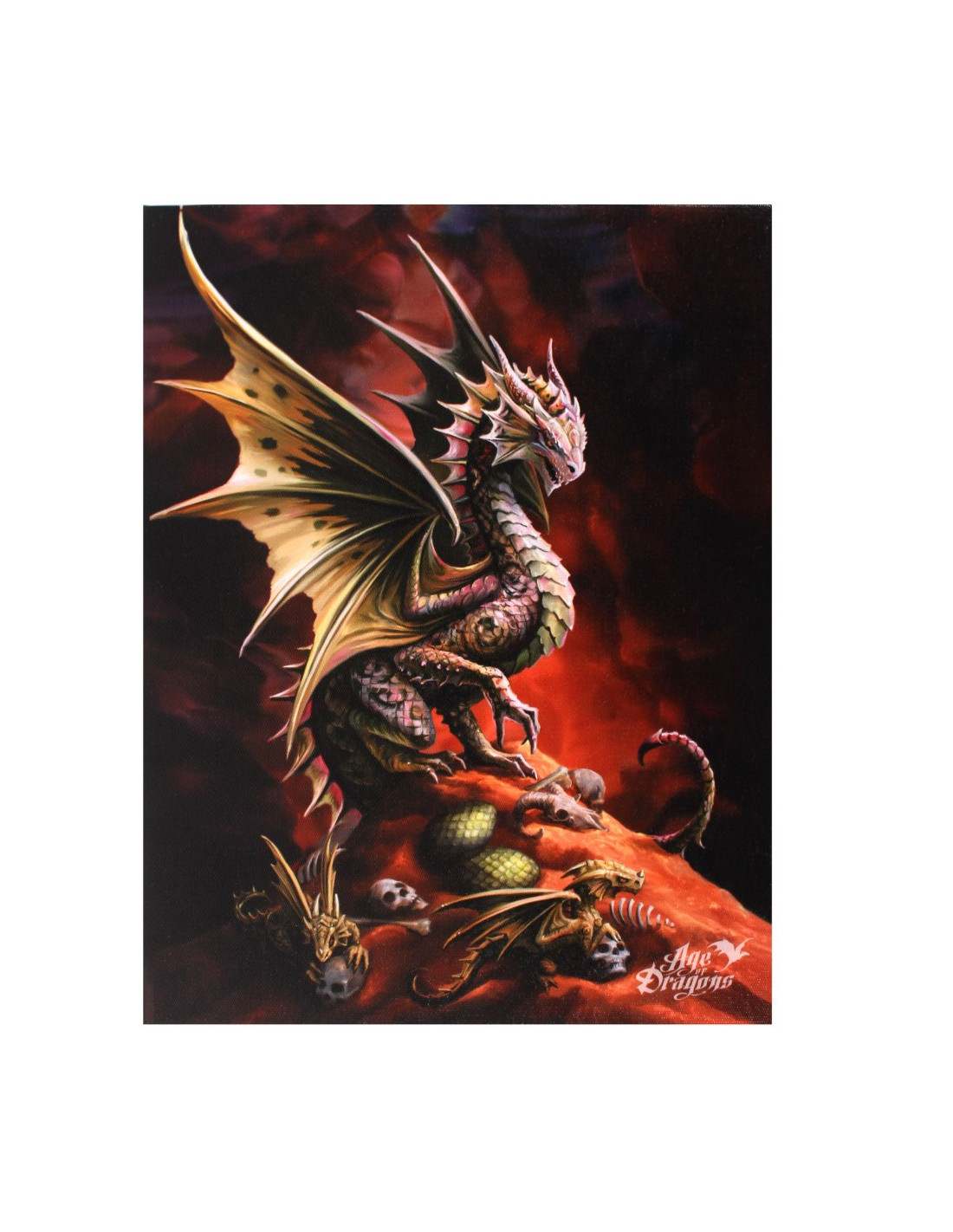Este cuadro de Anne Stokes representa a un dragón imponente en medio del desierto, símbolo de poder, resistencia y sabiduría ancestral. La obra captura la majestuosidad y la energía salvaje de estas criaturas míticas, evocando fuerza interior, protección y conexión con la fantasía.