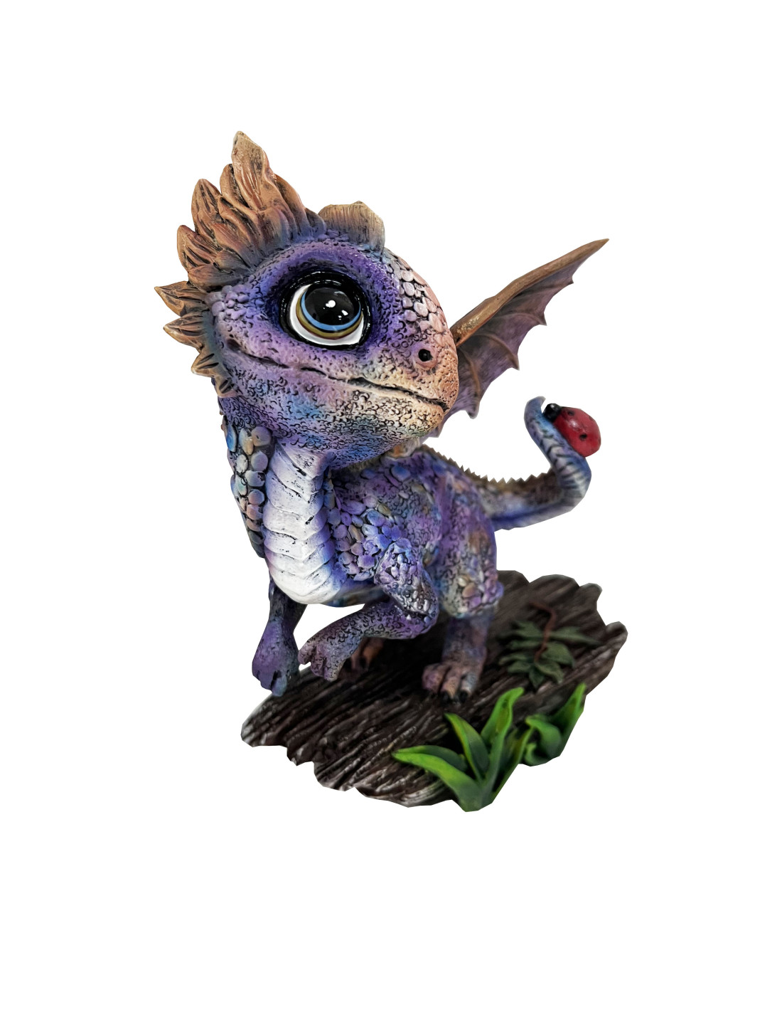 Una adorable escena de fantasía que une la ternura y la magia. Este dragón en miniatura interactúa con una pequeña mariquita, simbolizando la curiosidad, la armonía y la conexión con la naturaleza.