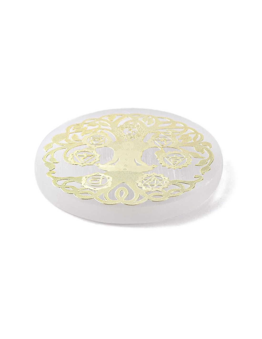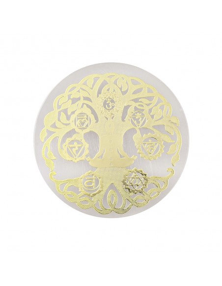 La placa de carga de selenita con Árbol de los 7 Chakras, decorada con lámina dorada, es una herramienta sagrada de alta vibración espiritual diseñada para limpiar, recargar y armonizar energéticamente. La selenita es conocida por su capacidad de purificación profunda y conexión con planos superiores, mientras que el Árbol de la Vida de los 7 Chakras simboliza el equilibrio y la alineación energética integral.