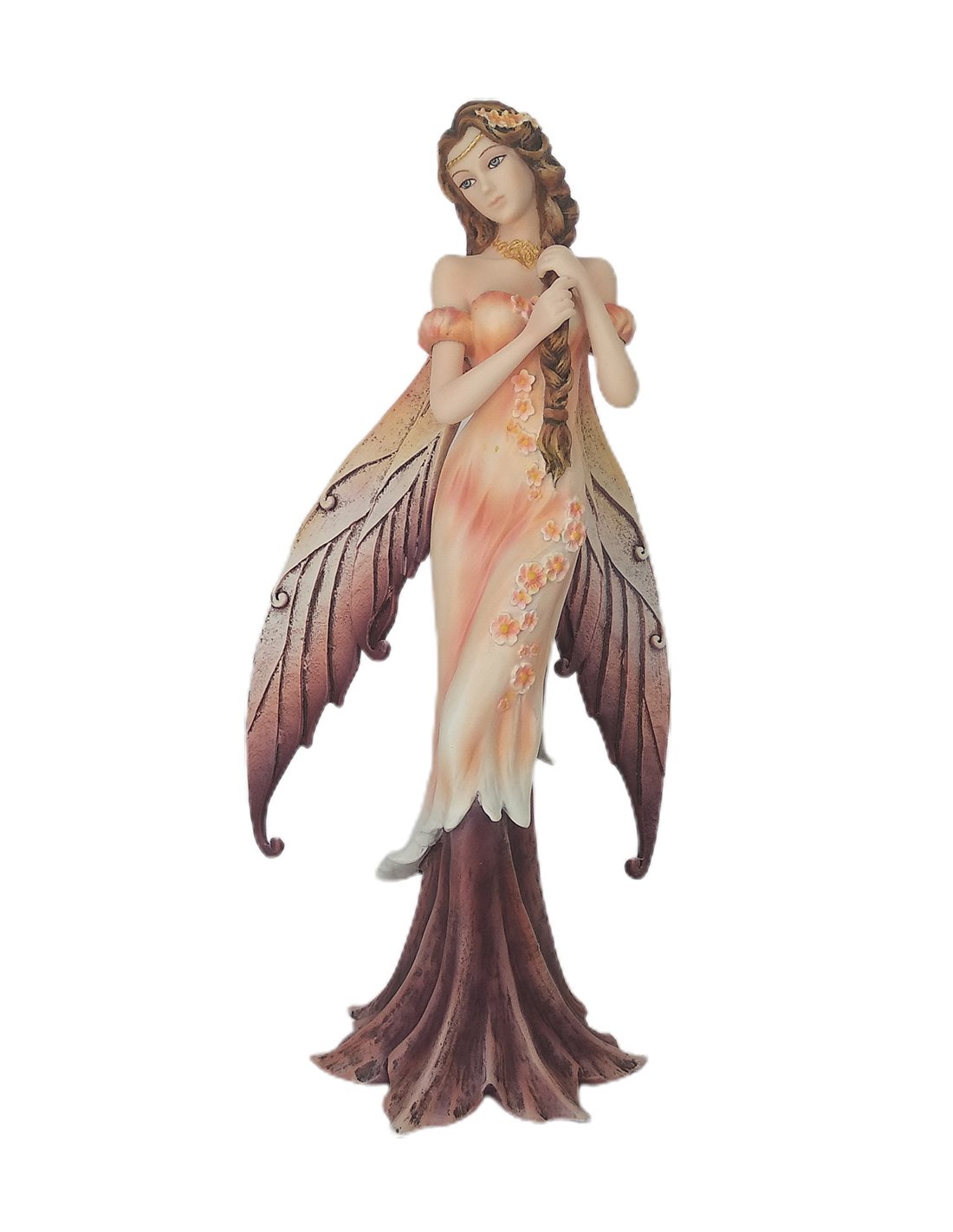 La Hada Brighit es una figura llena de dulzura y gracia. Con su vestido en suaves tonos rositas y sus alas hacia abajo, transmite una sensación de serenidad y paz. Su preciosa trenza en el cabello agrega un toque de delicadeza y belleza natural. Esta hada refleja la feminidad y la armonía, invitando a quienes la contemplan a conectar con su energía suave y positiva.