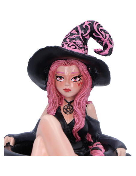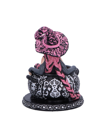 Figura de bruja inspirada en Baie Rose, una versión divertida y rosada de la brujería clásica.
