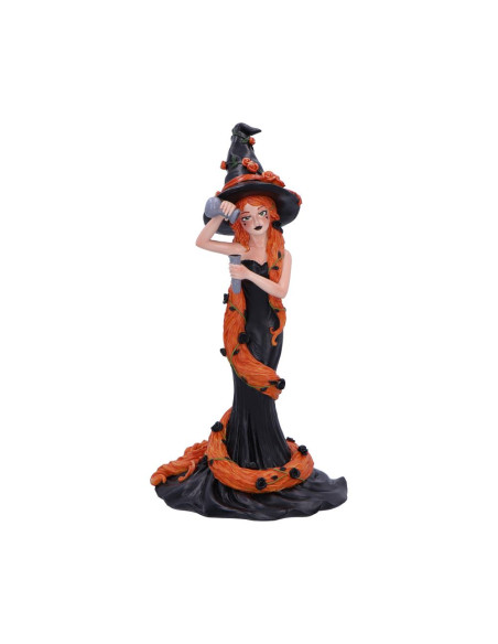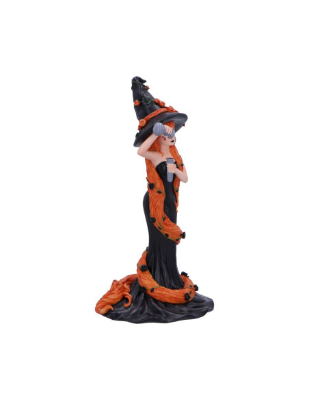 Preciosa figura de bruja de 23,5 cm con detalles exquisitos, que irradia encanto gótico y calidez otoñal.