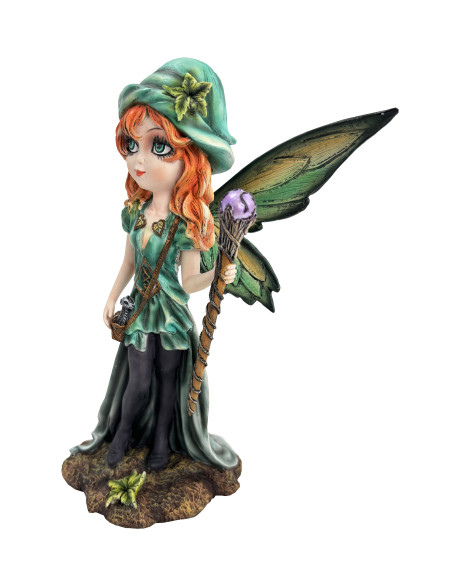 Onirys, la guardiana del bosque, es una dulce ninfa que irradia magia, armonía y energía positiva en cada detalle. Vestida en tonos verdes y con su vara en la mano, representa la conexión con la naturaleza, la intuición y la serenidad espiritual.