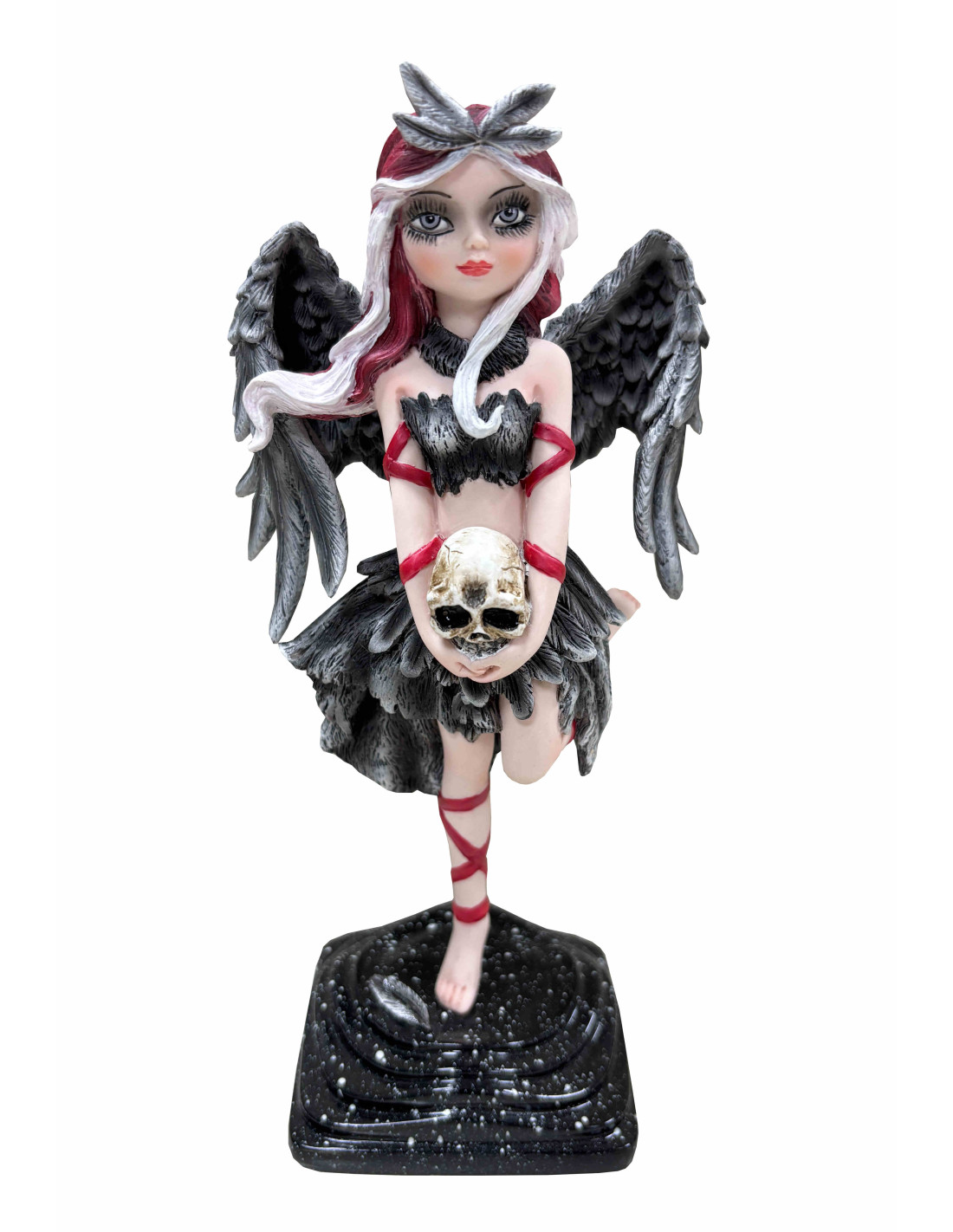 Nivhar, cuyo nombre de raíz hebrea sugiere “el elegido”, es un ser que combina la pureza de las alas angelicales con la sabiduría ancestral representada en la calavera que sostiene. Su presencia evoca misterio, protección y conexión espiritual profunda, recordándonos la dualidad de la vida y la muerte, así como la fuerza de lo sagrado.