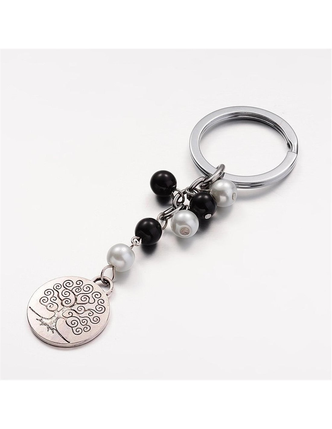 Llavero arbol de la vida, con bolas en negro y blanco.