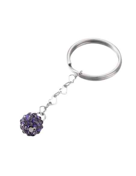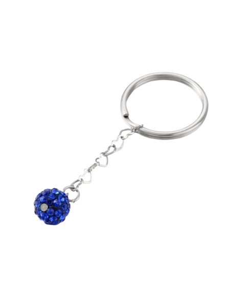 Llavero decorado con bola brillante, azul o gris.