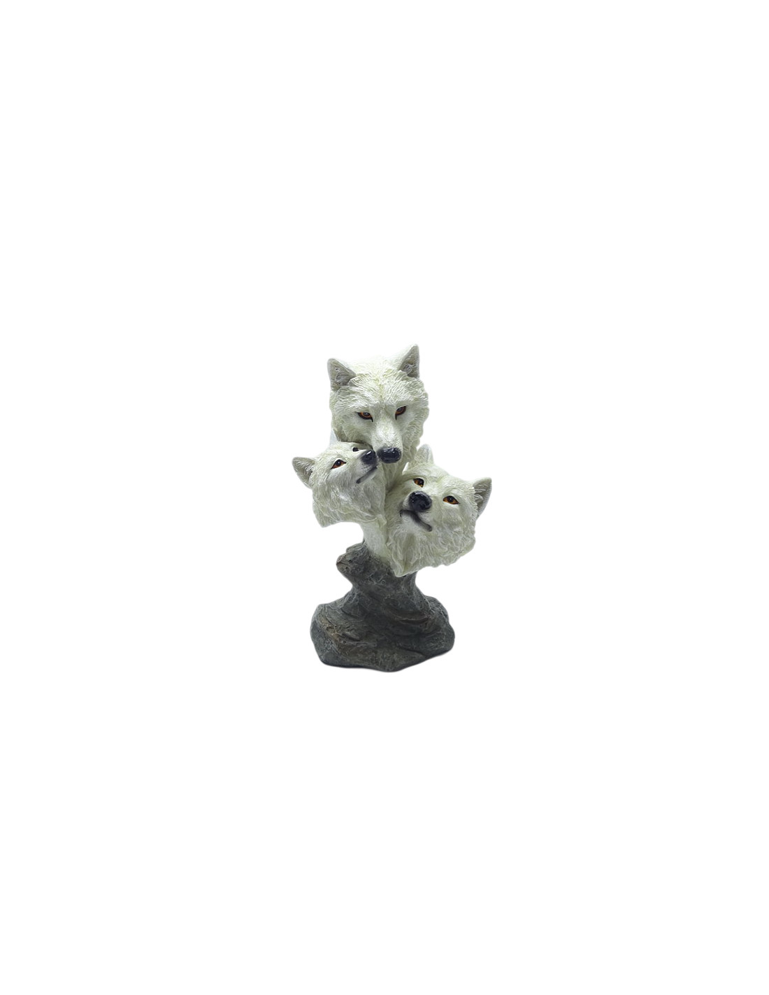 Cabezas Familia de Lobos – Tres Lobos Blancos: Unión, Sabiduría y Protección
