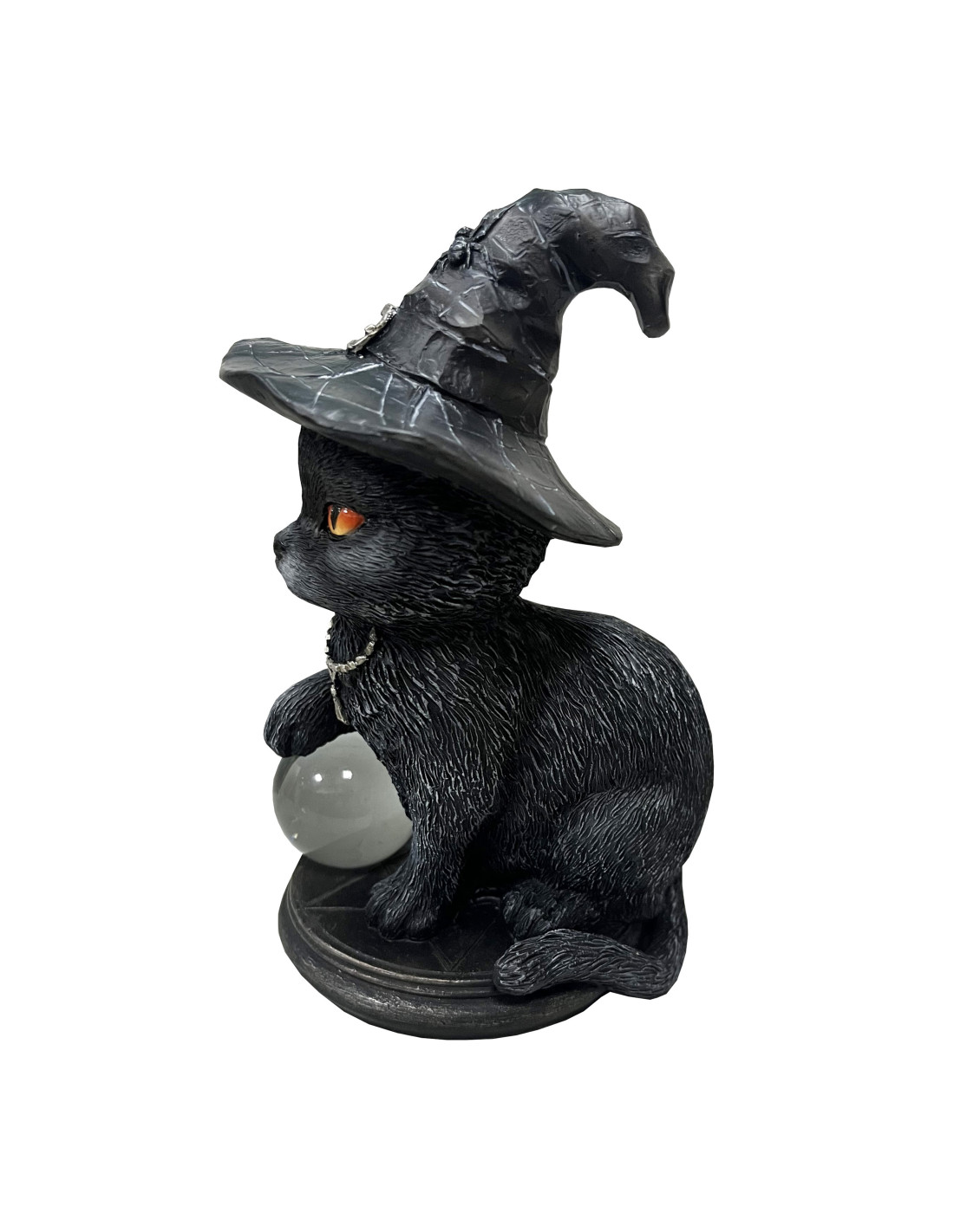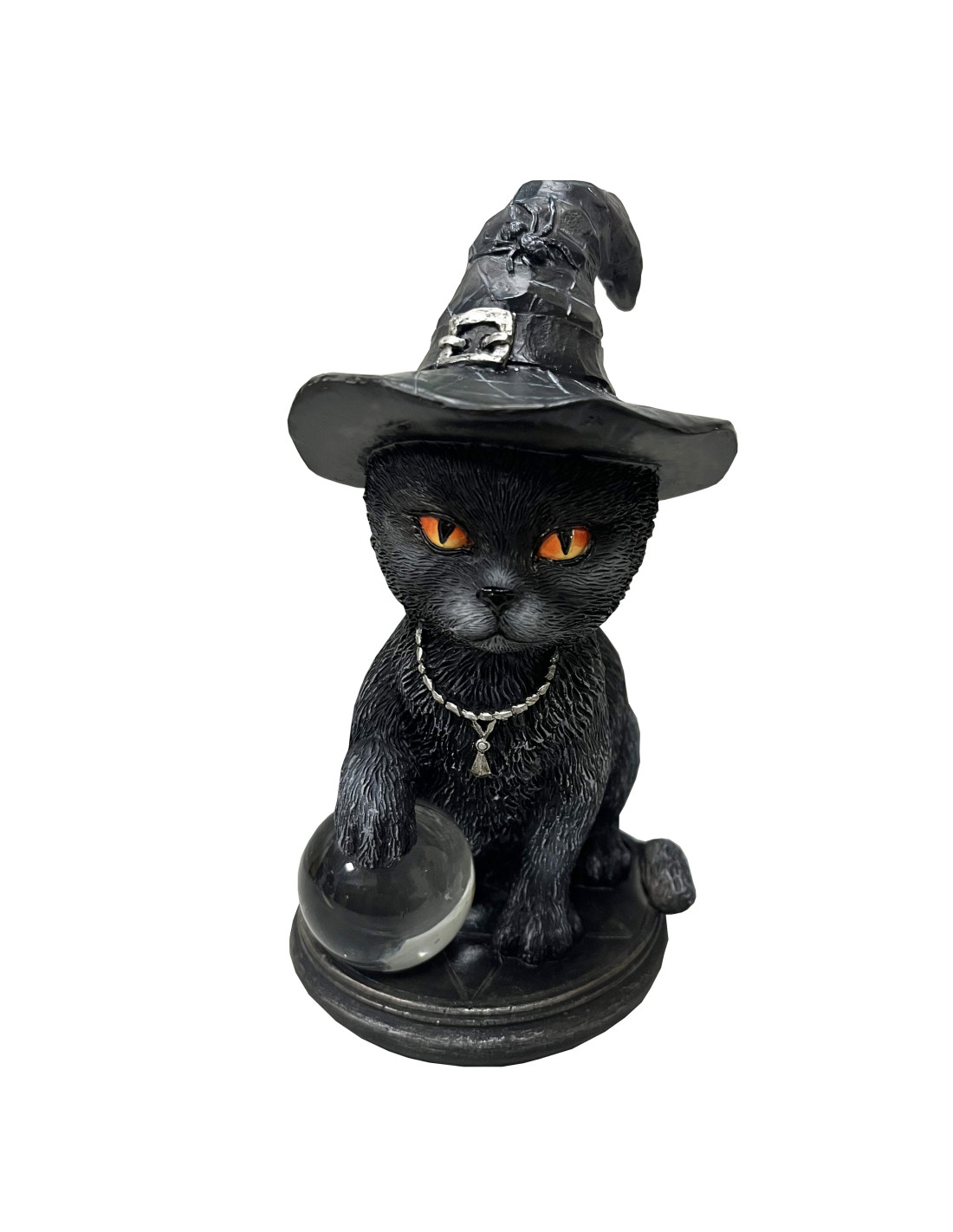 Descubre el encantador y místico Gato Phat sentado con su fascinante bola de cristal, una pieza que captura la esencia de la intuición y la magia. Este gato, conocido por su simbolismo de sabiduría y conexión espiritual, es el complemento perfecto para cualquier decoración esotérica o colección de objetos mágicos.