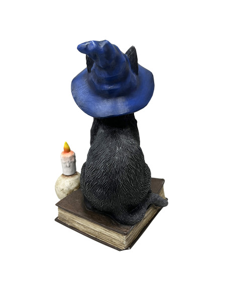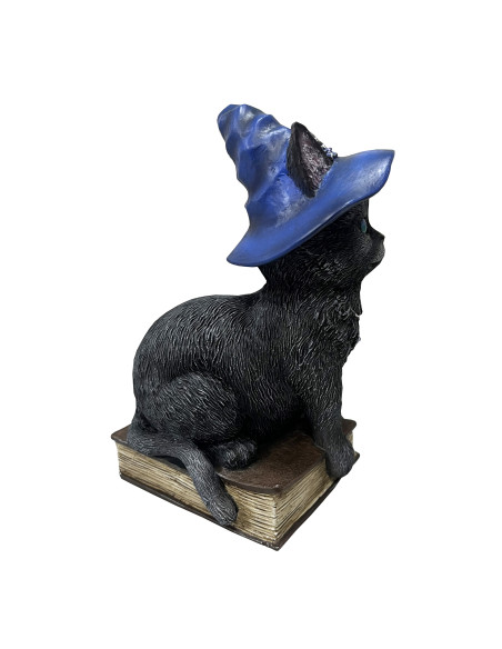 Figura de Gato Philo Negro con Sombrero Azul sobre un Libro – Magia y Sabiduría Felina