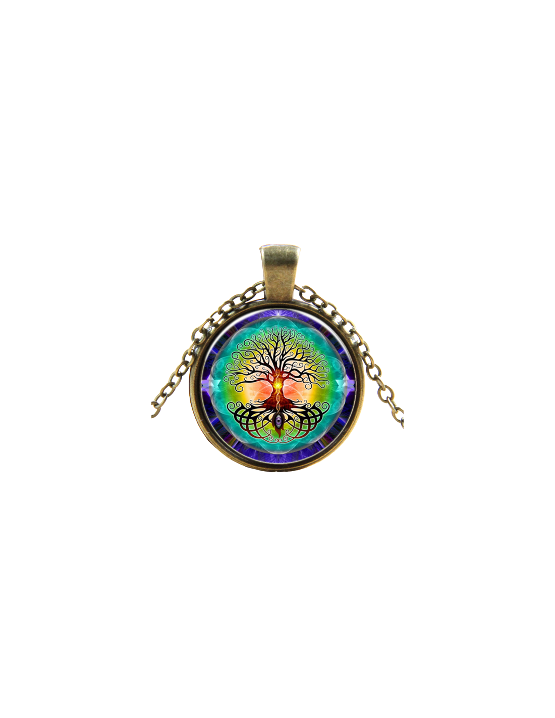 BR012 Arbol de la Vida Fondo Verde - Mandala Colgante