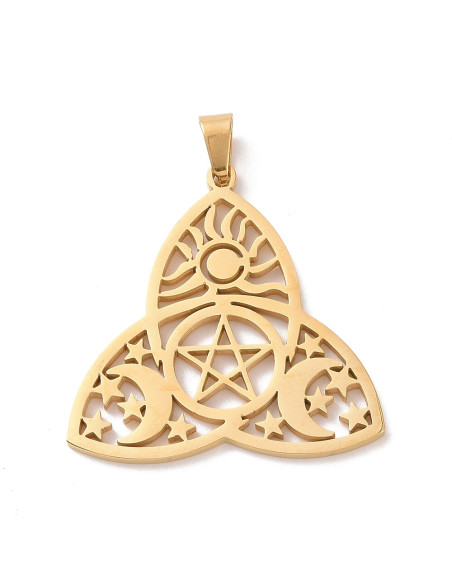 Colgante de Acero Bizantino de alta calidad, en forma de talismán protector de las brujas, con pentagrama, lunas y sol, troquelado