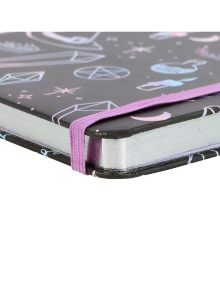 Ya sea para tomar notas, hacer listas o escribir un diario, este hermoso cuaderno A5 “Magic Potion” transforma tu escritorio con su diseño místico y holográfico, decorado con cristales, sombreros de bruja y pociones. Sus páginas plateadas y su elegante cinta marcadora lila añaden un toque mágico y sofisticado a cada escritura.