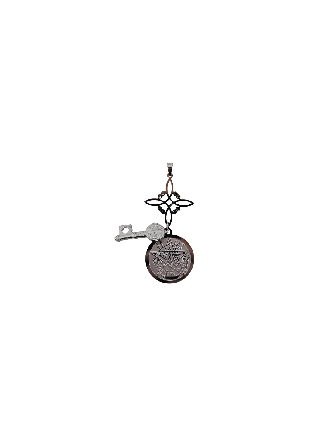 Nudo de Brujas con Tetragramatón y Llave de San Benito "Triple Protección" - "Máxima Protección" protección, utilizado durante siglos para resguardar a quienes lo llevan de energías negativas, hechizos oscuros y maleficios. El Tetragramatón, un símbolo antiguo de protección, se asocia con la fuerza cósmica y la protección divina.