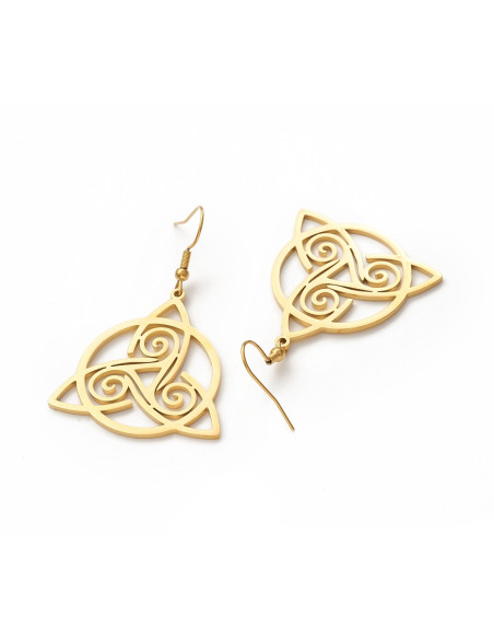 Pendiente largo con Triqueta. Todo en acero bizantino de alta calidad, antialérgico.