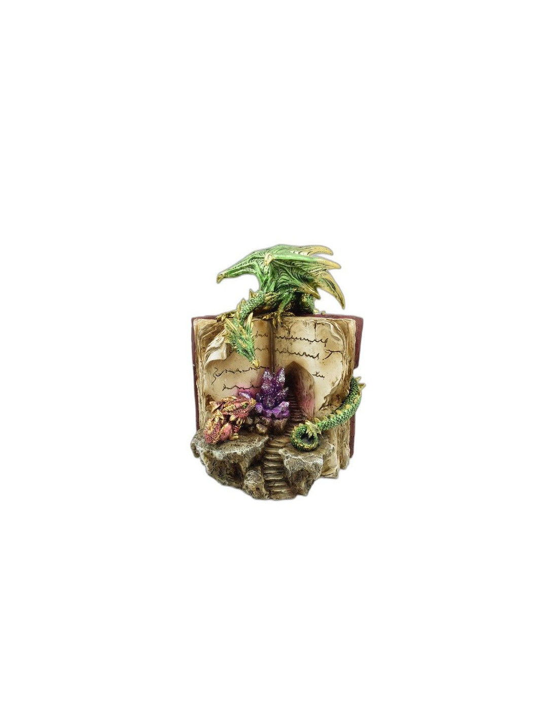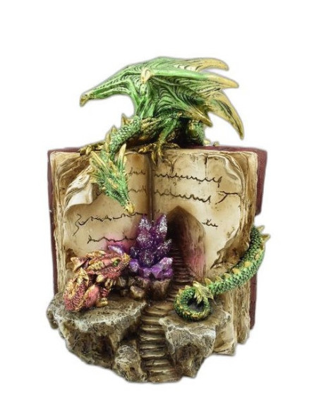La figura del Dragón con Libro representa la unión sagrada entre el poder instintivo del Dragón y la sabiduría ancestral contenida en los libros sagrados. Este símbolo esotérico es un portal entre el conocimiento terreno y la sabiduría universal, iluminando el camino del buscador espiritual.