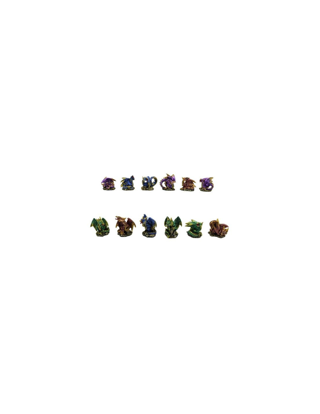 Descubre el poder y la majestuosidad en miniatura con este pack de 12 dragones sobre roca, cada uno con una pose única, listo para proteger, observar o desplegar su magia desde lo alto de su pedestal rocoso.