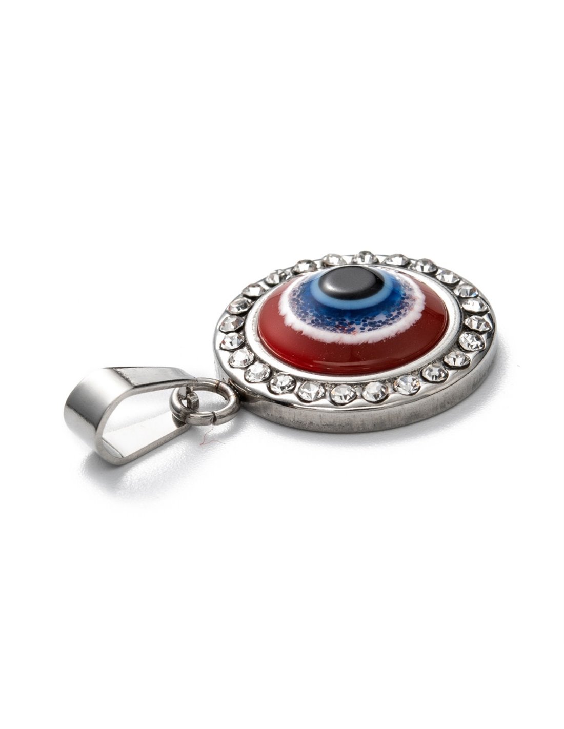 Colgante de Acero Bizantino de alta calidad, en forma circular con Ojo Turco y Brillantes.