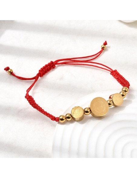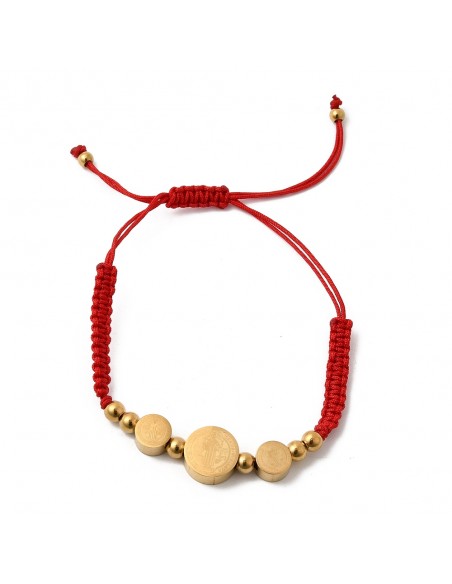 AT044 Pulsera Medalla San Benito Dorada Hilo rojo