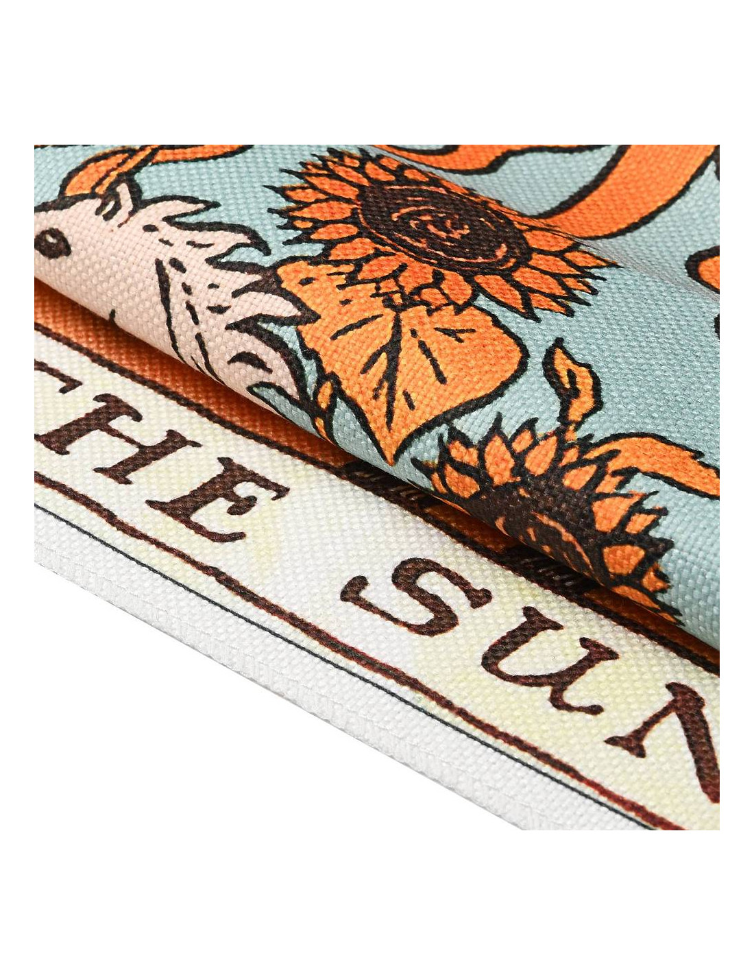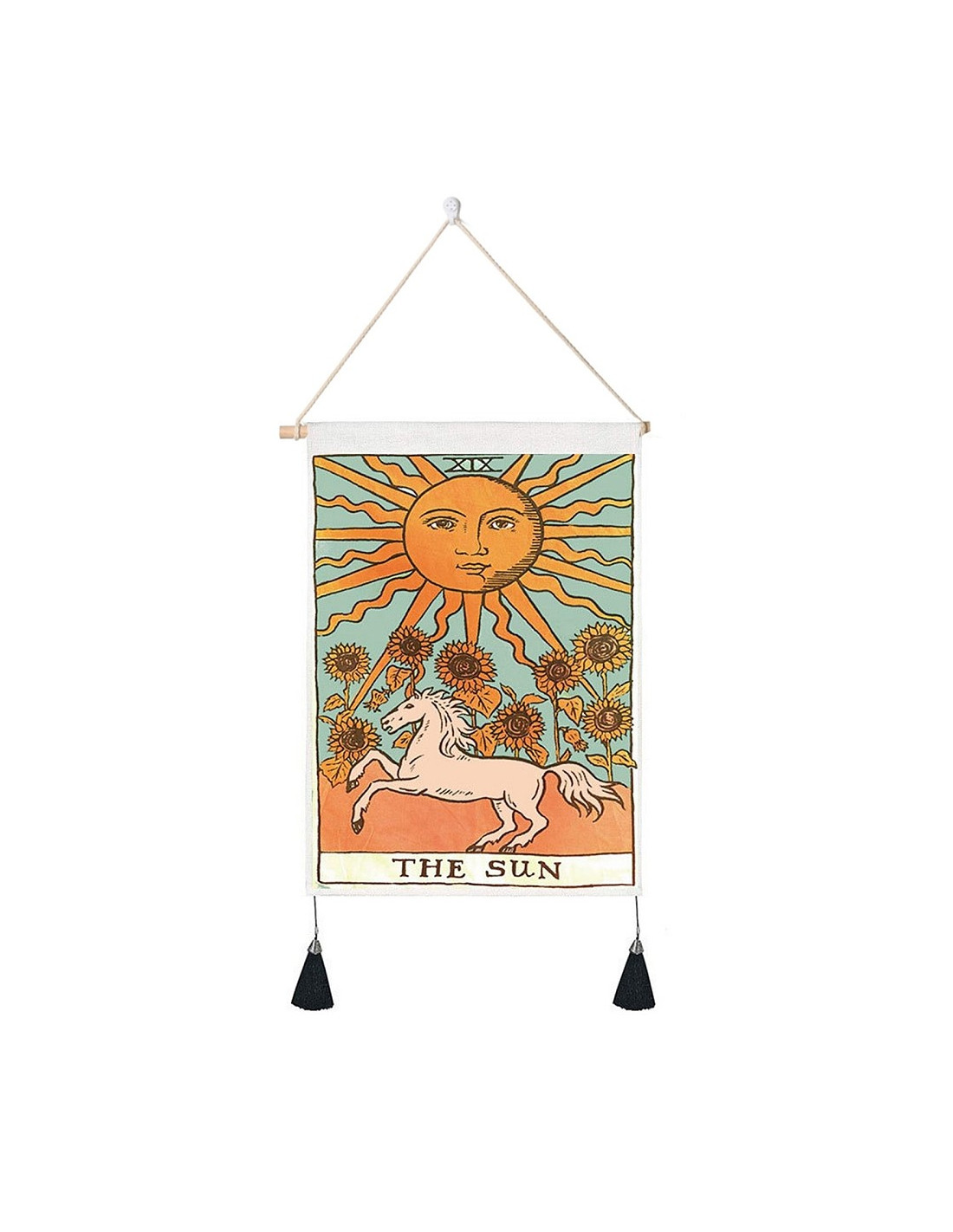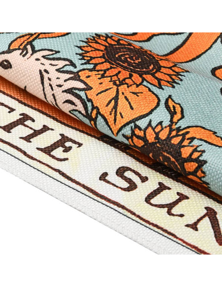 Este tapiz representa la poderosa carta del Sol, símbolo de claridad, energía positiva y renovación en el tarot. Su imagen irradia alegría, optimismo y la promesa de un nuevo comienzo lleno de luz y crecimiento personal.
