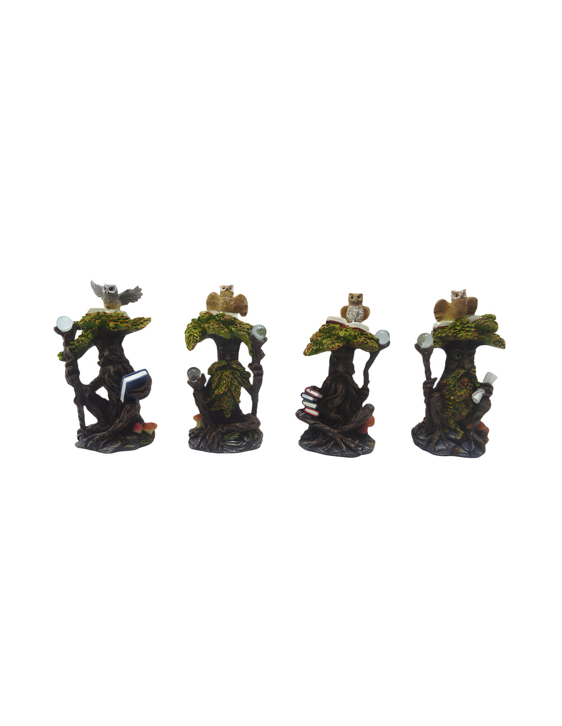 Arbolitos Green Man con Libro, Bola de Cristal y Búho