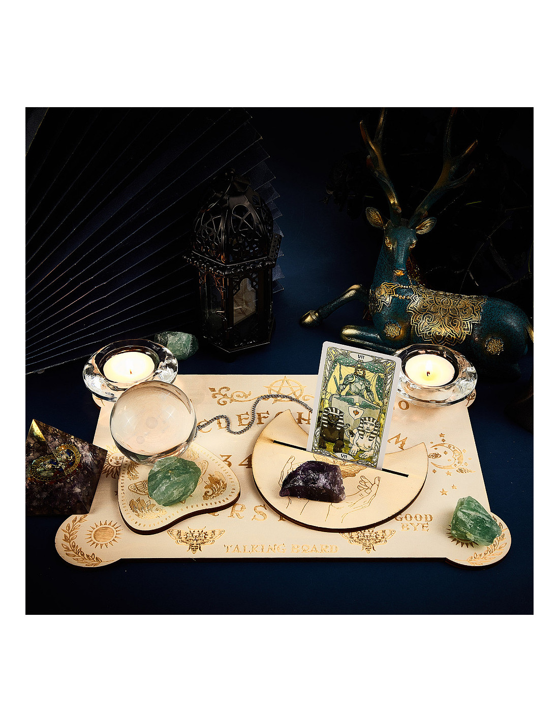 Conjunto de tablero Ouija, soporte para cartas tarot y péndulo.